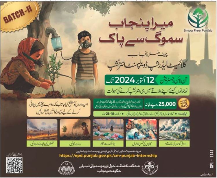 Vacant posts including internship program are announced in Environment Protection & Climate Change Department Lahore, lahore Punjab Pakistan as per 27 September 2024 advertisement in daily Daily Pakistan Newspaper. Persons with Bachelor and Master etc. education can apply.