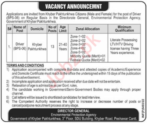 Latest Environmental Protection Agency EPA Driving Posts Peshawar 2025