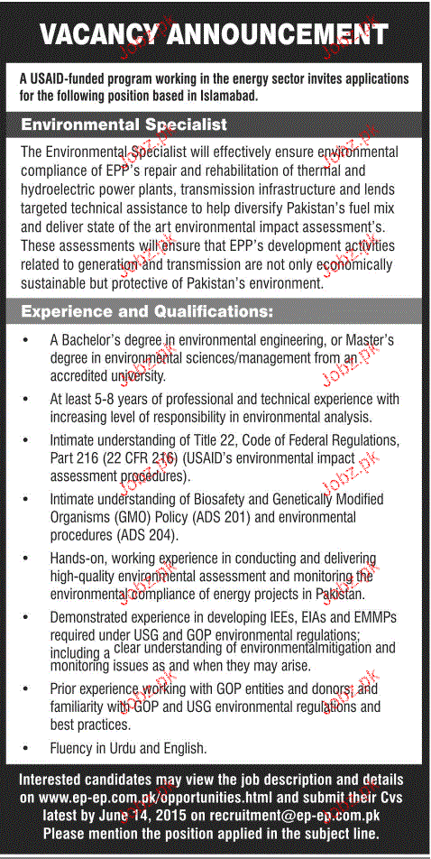Apply as per details in job advertisement. Login to view further details of how to apply via https://www.jobz.pk online.
