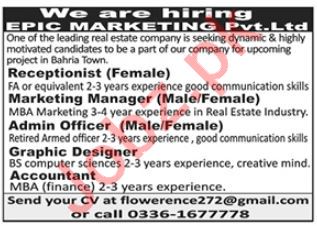 Latest EPIC Marketing Pvt Ltd Real Estate Posts Islamabad 2025