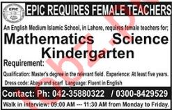 Latest English Medium Islamic School EPIC Teaching Posts Lahore 2025