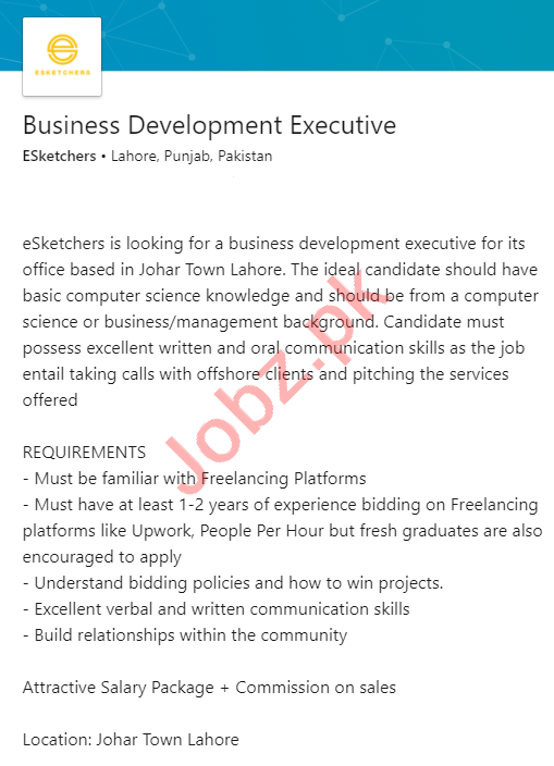ESketchers Lahore Jobs 2020 For Business Development Manager