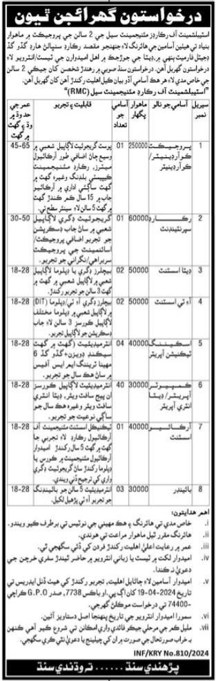 Establishment of Record Management Cell RMC Sindh Jobs 2024