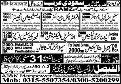 Vacant posts including supervisor technician, advertising technician, steel structure designer, steel structural designer, fabricator steel structure, db box control panel technician, control panel technician, estimation engineer, led supervisor technician, electrical designer and industrial electrician are announced in 10 baloch Regiment Dammam, riyadh Saudi Arabia as per 30 May 2025 advertisement in daily Express Newspaper. Persons with Matric, DAE, B.E, Bachelor and Intermediate etc. education can apply.