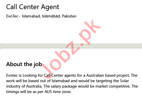 EvoTec Islamabad Jobs 2021 For Call Center Agent