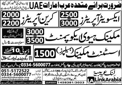 Link Arabia Overseas Recruitment Company is looking for candidates for following posts as per job advertisement published in daily Express Newspaper of March 14, 2023 for location Abu Dhabi, abu dhabi UAE: