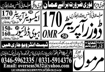 Excavator Operator & Dozer Operator Jobs 2024 in Oman