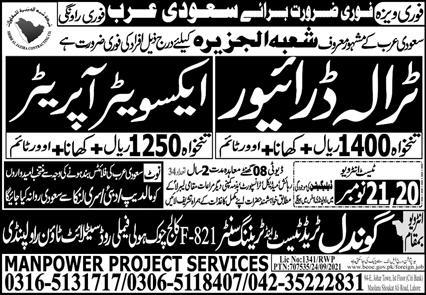 Excavator Operator Tralla Driver Jobs In Saudi Arabia