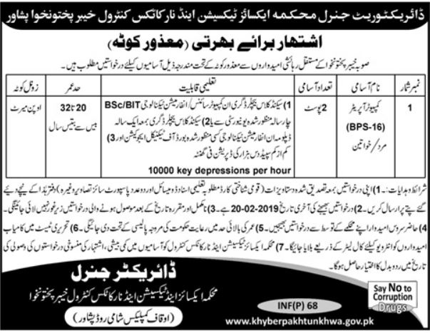 Latest Excise Taxation & Narcotics Control Department Computer Posts Peshawar 2025