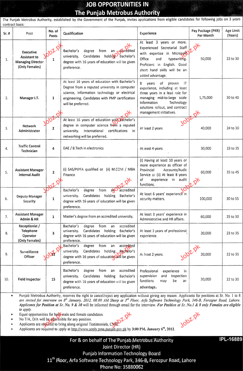Apply as per details in job advertisement. Login to view further details of how to apply via https://www.jobz.pk online.
