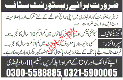 Apply as per details in job advertisement. Login to view further details of how to apply via https://www.jobz.pk online.