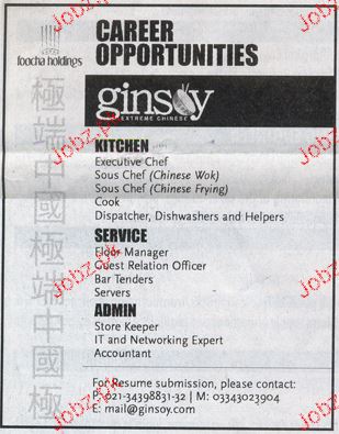 Executive Chef, Floor Manager, Store Keepers Job Opportunity