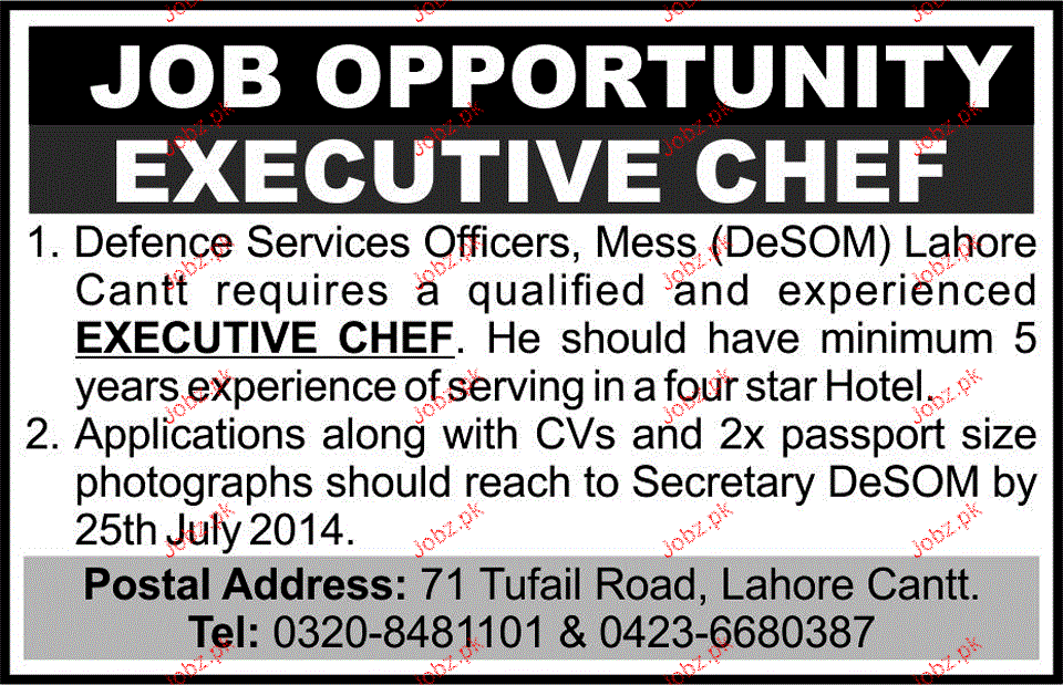 Apply as per details in job advertisement. Login to view further details of how to apply via https://www.jobz.pk online.