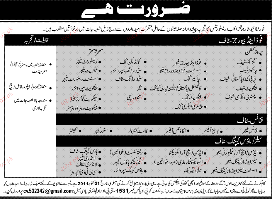 Latest Private Company Hotel Posts Rawalpindi 2025