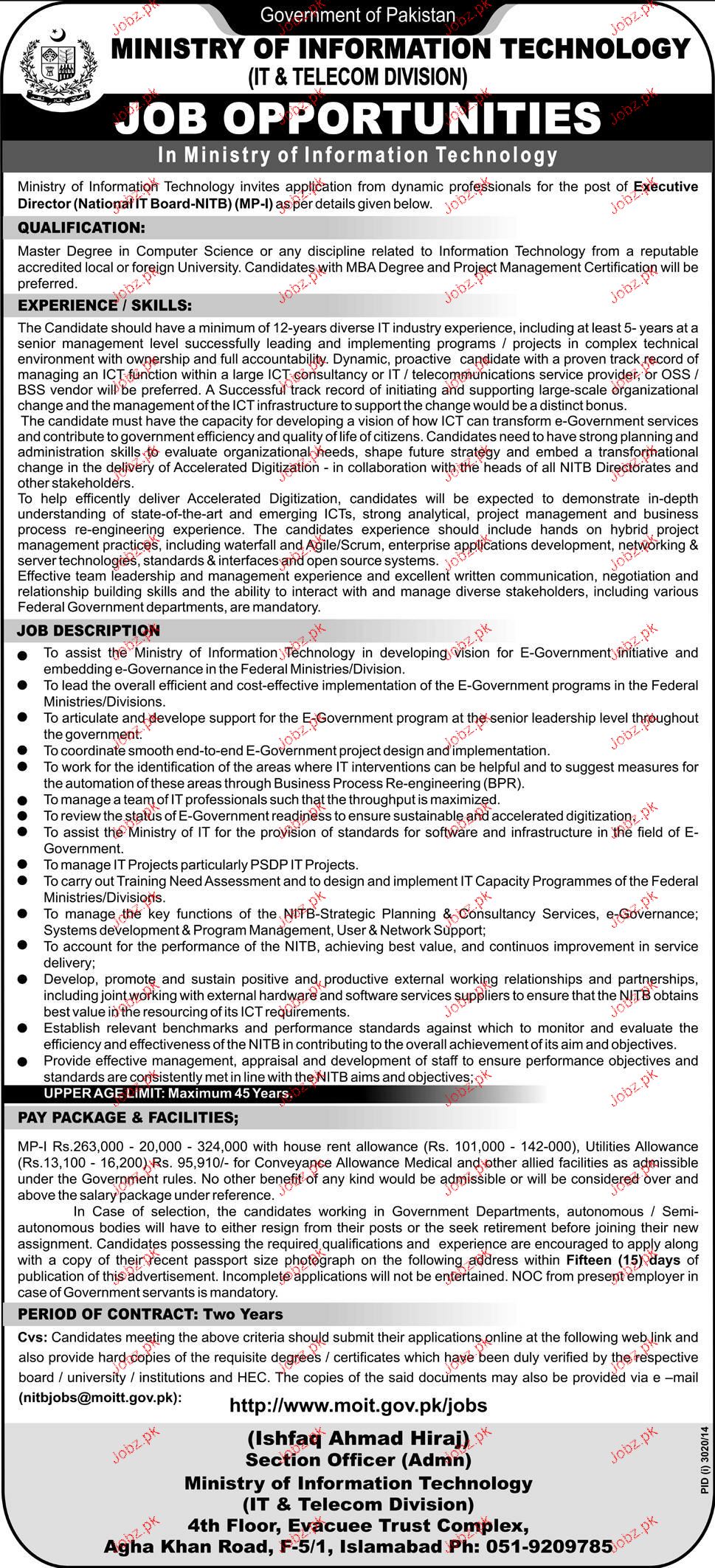 Executive Director Job in Ministry of Information Technology