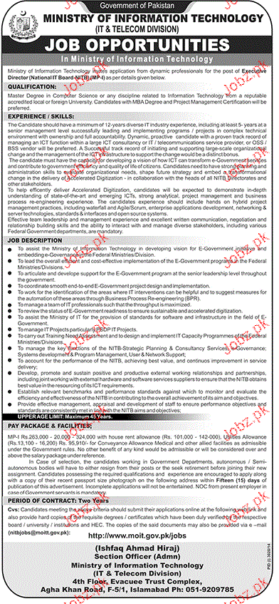 Executive Director Job in Ministry of Information Technology