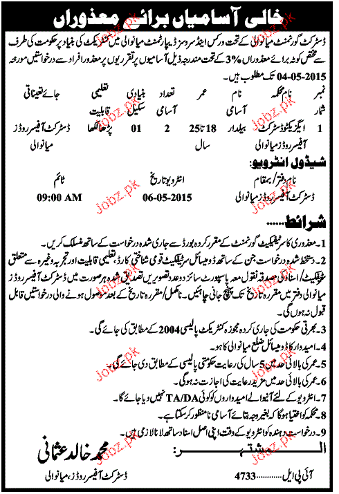 Apply as per details in job advertisement. Login to view further details of how to apply via https://www.jobz.pk online.
