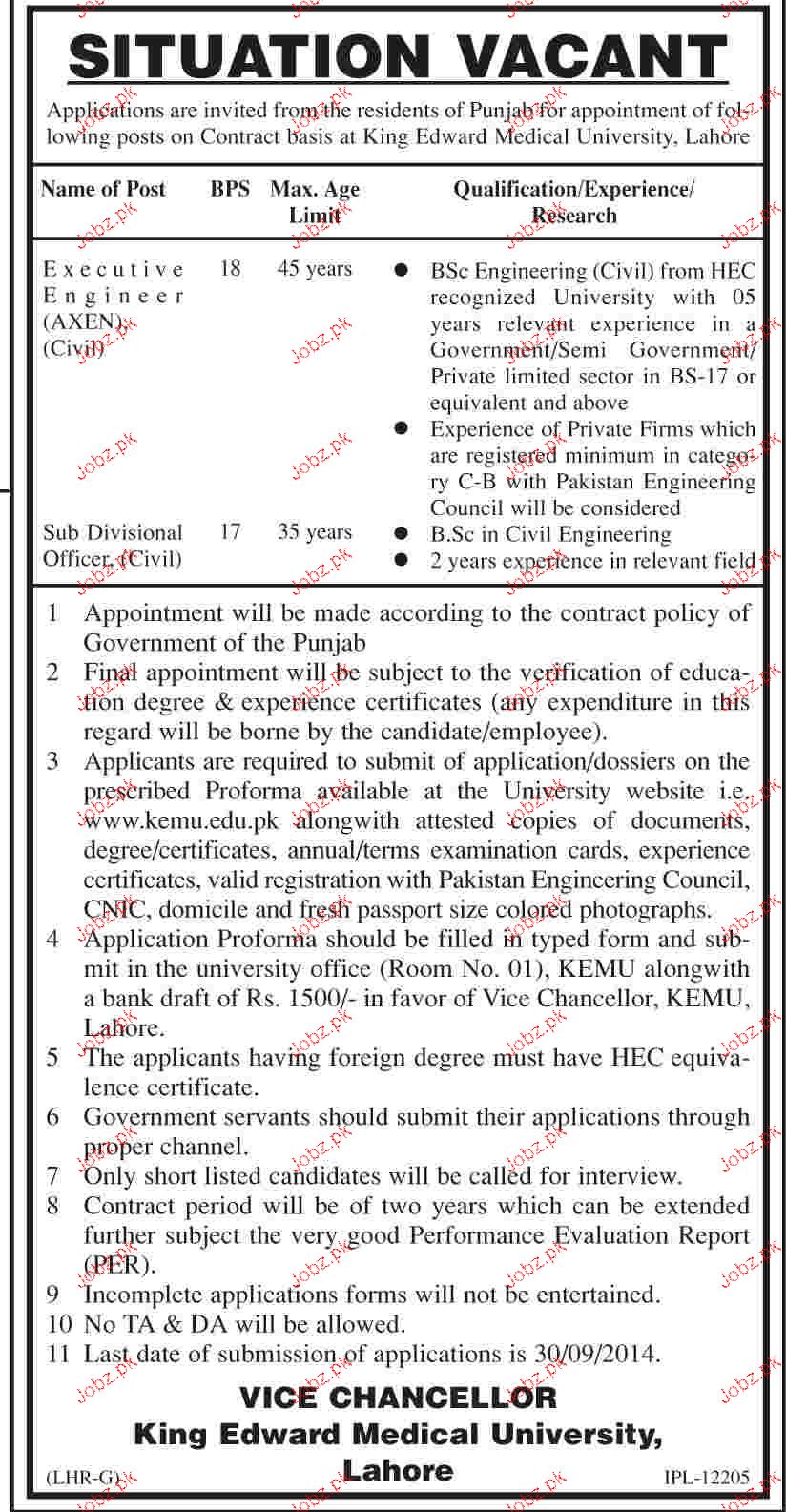 Executive Engineers JOb in King Edwards Medical University