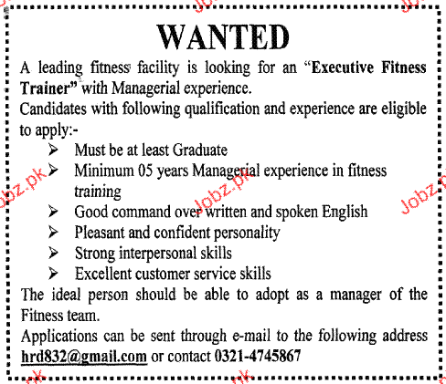 Apply as per details in job advertisement. Login to view further details of how to apply via https://www.jobz.pk online.