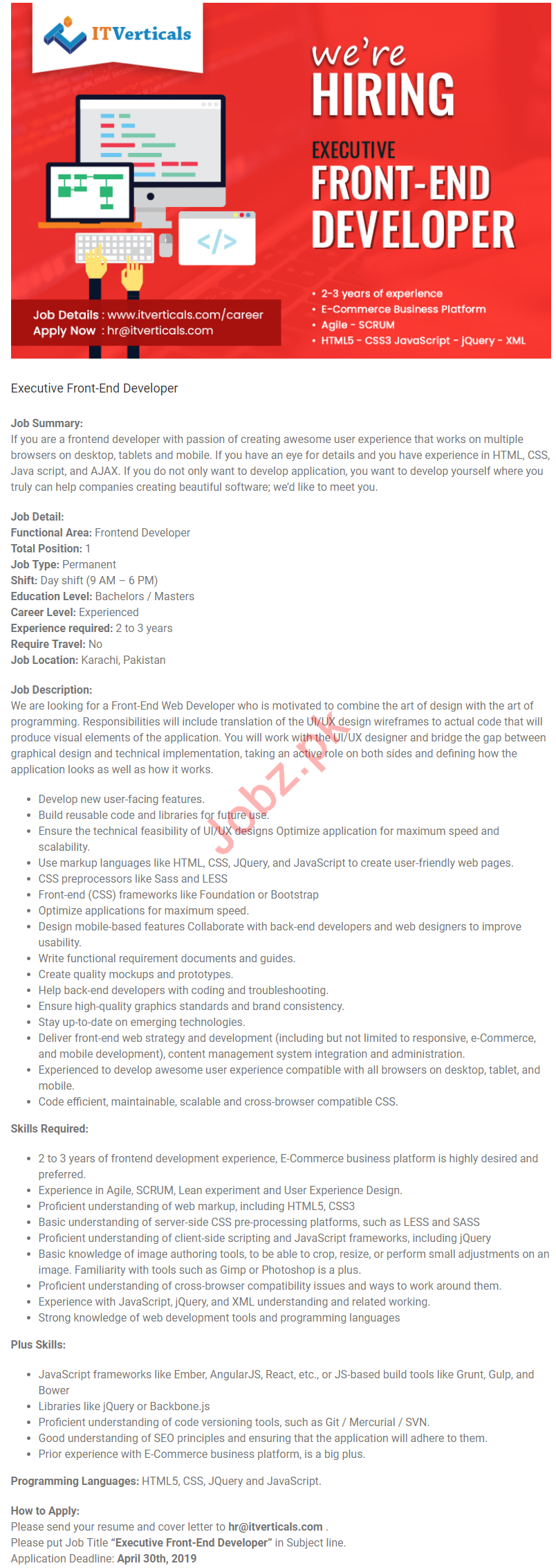 Latest IT Verticals Pvt Ltd IT Posts Karachi 2025