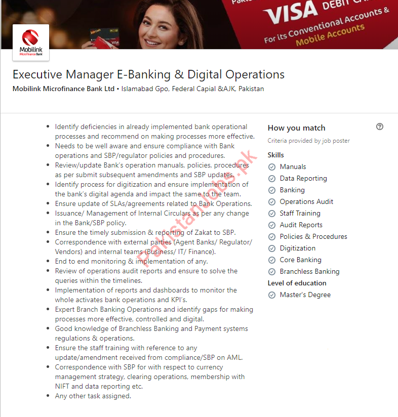 Latest Mobilink Microfinance Bank Ltd Bank Posts Islamabad 2025