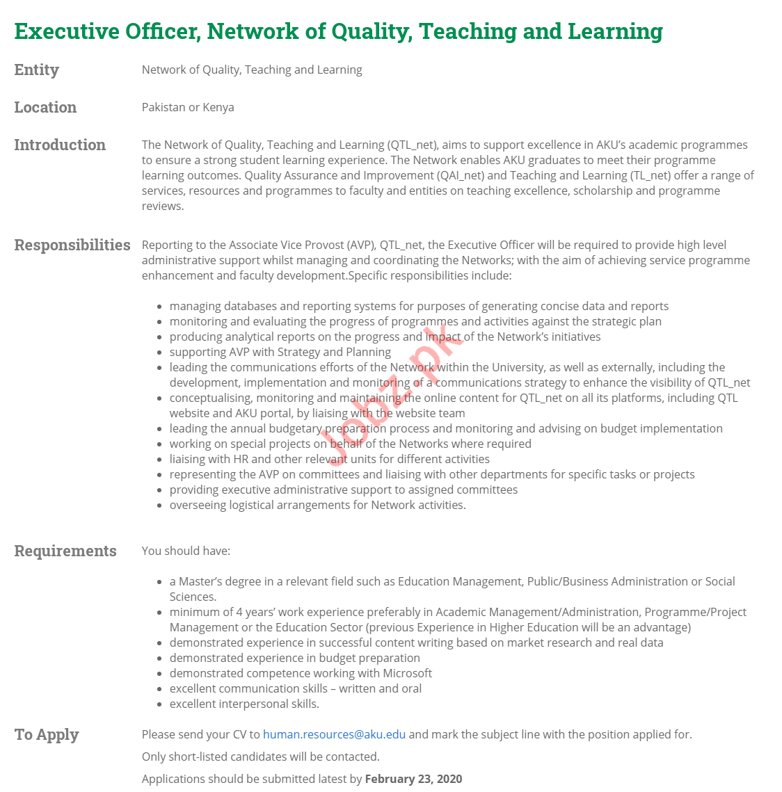 Executive Officer Jobs In Aga Khan University