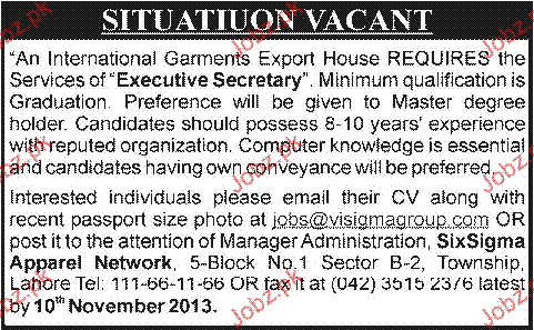 Apply as per details in job advertisement. Login to view further details of how to apply via https://www.jobz.pk online.