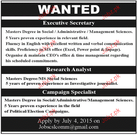 Apply as per details in job advertisement. Login to view further details of how to apply via https://www.jobz.pk online.