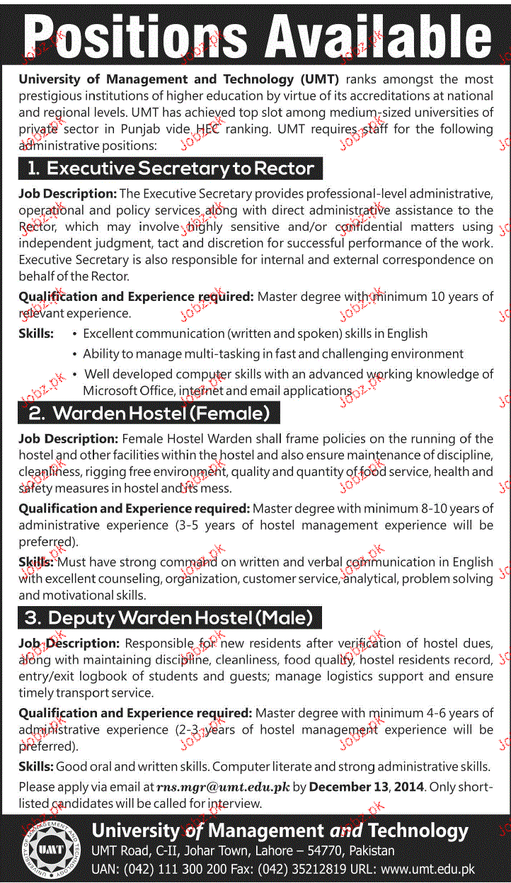 Apply as per details in job advertisement. Login to view further details of how to apply via https://www.jobz.pk online.