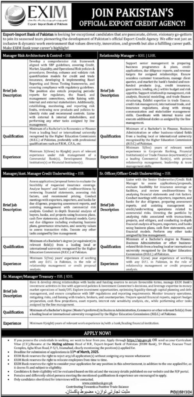 Vacancies in Exim Bank of Pakistan Advertisement February 2025