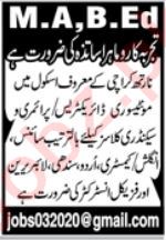 Private School jobs advertisement dated about 11 September 2022 in daily Jang Newspaper invites application for the vacant post of librarian, science teacher, urdu teacher, english teacher, sindhi teacher, montessori directress, chemistry teacher and physical instructor in Karachi, karachi Sindh Pakistan. Educational qualifications required Master, M.sc, Bachelor and MA etc.