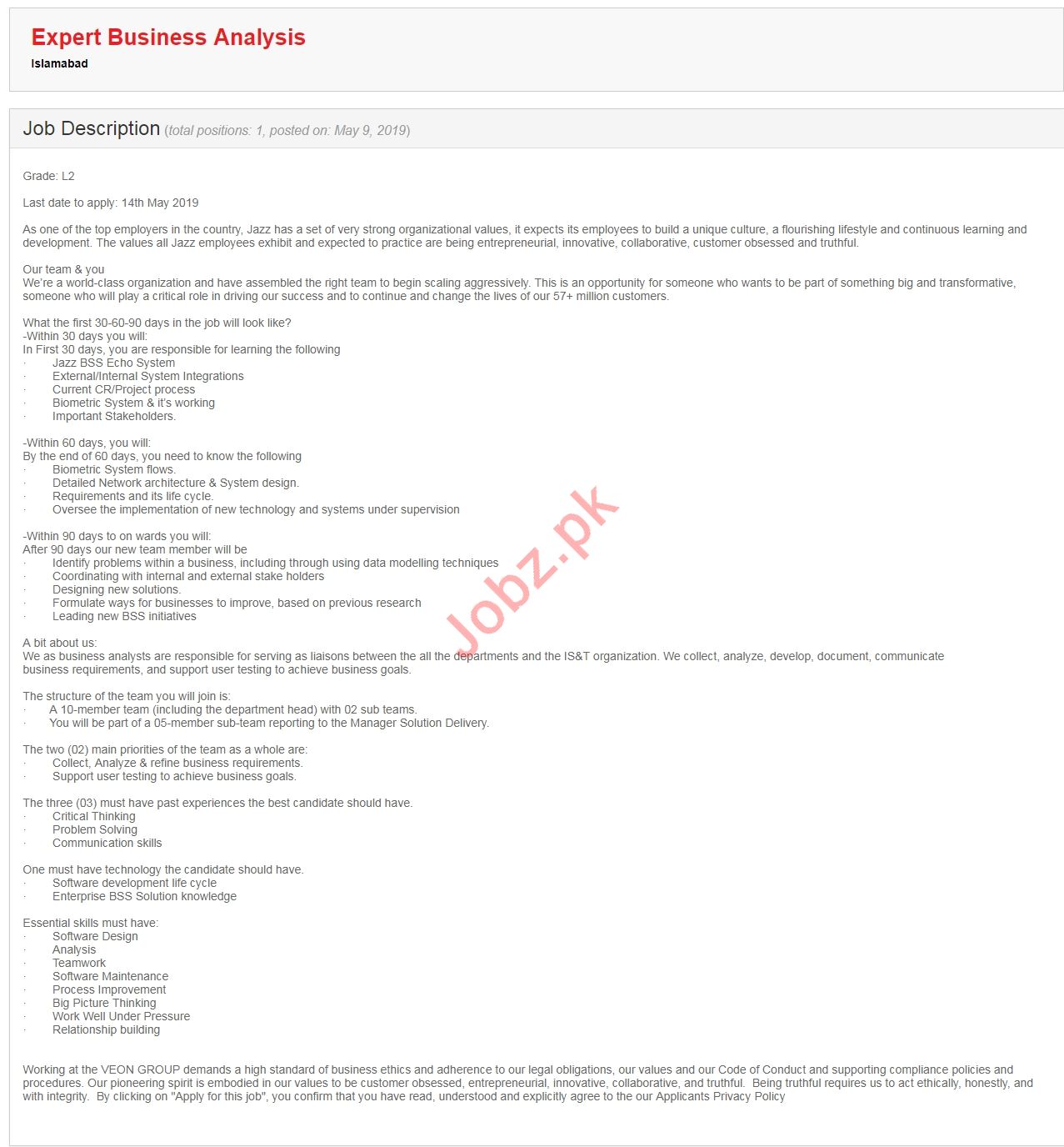 Expert Business Analysis Jobs In Jazz Telecommunication