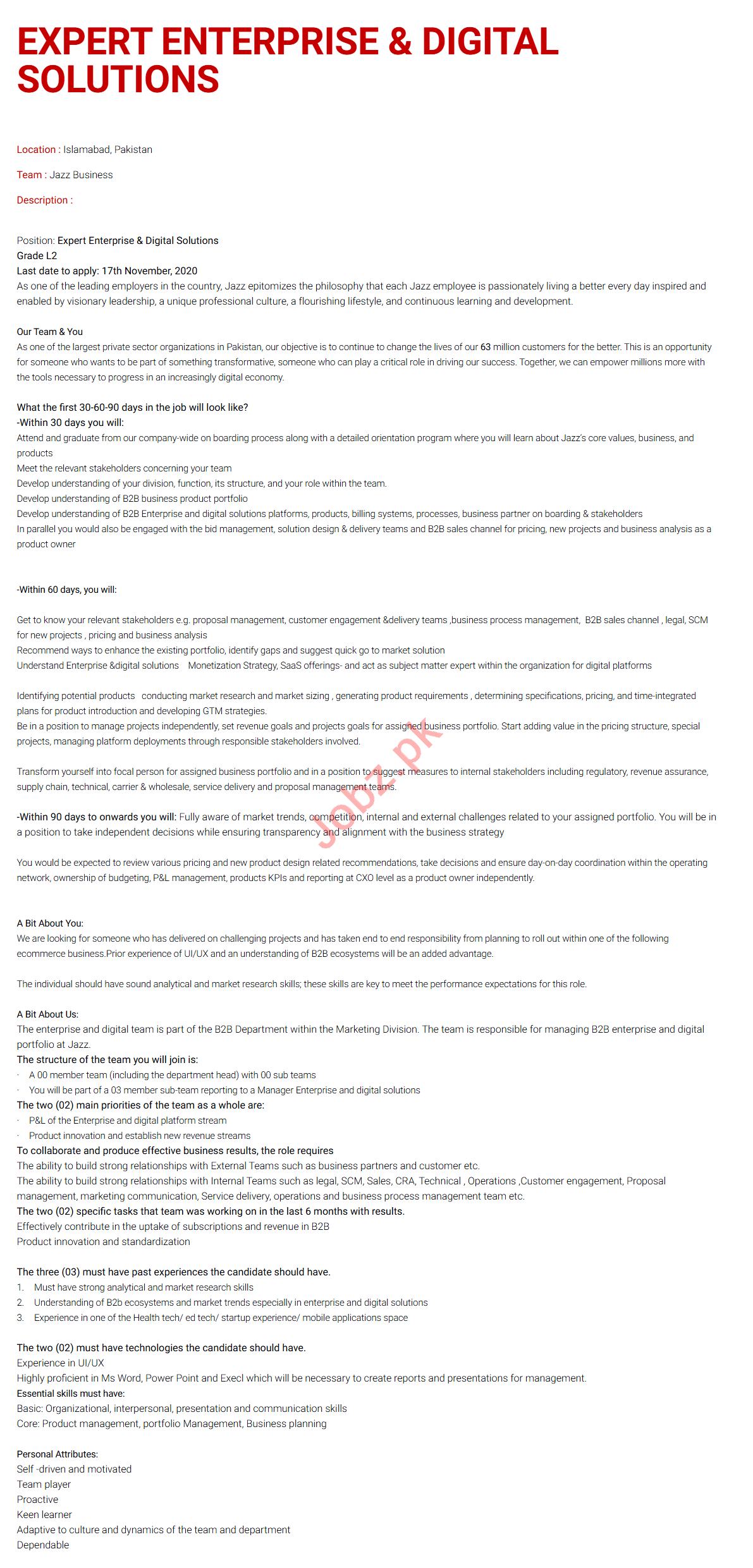 Expert Enterprise & Digital Solutions Jobs 2020 In Islamabad