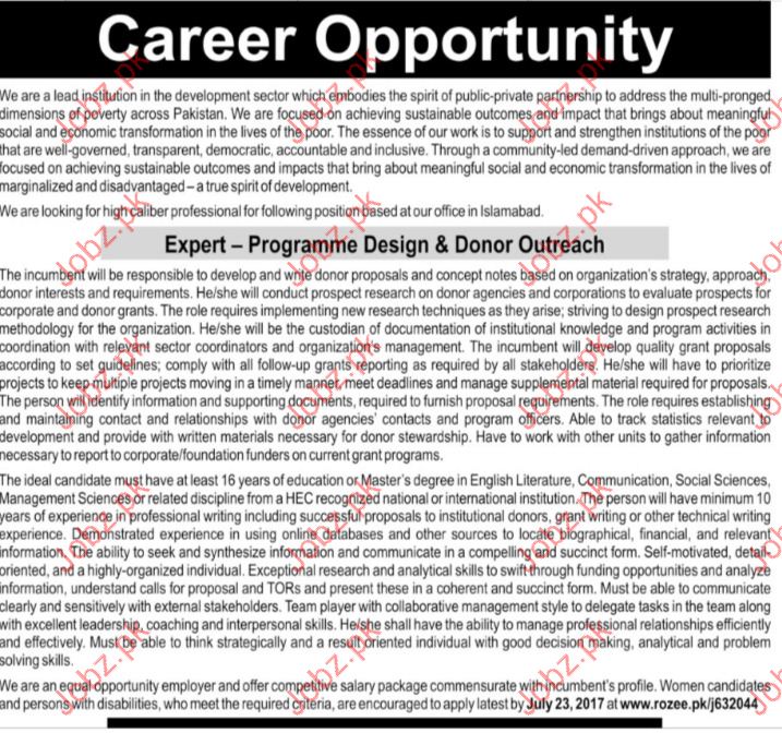Apply as per details in job advertisement. Login to view further details of how to apply via https://www.jobz.pk online.
