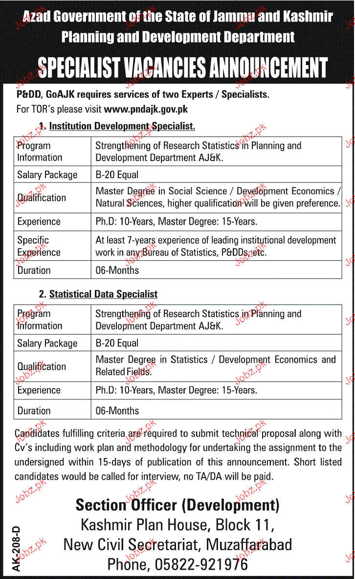 Apply as per details in job advertisement. Login to view further details of how to apply via https://www.jobz.pk online.