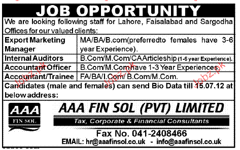 Todays New Jobs in Faisalabad