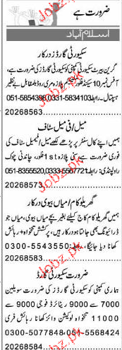 Express Classified Security Guards, Drivers and Call Center Staff are required in Islamabad