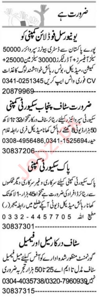 Vacant posts including sales officer, order taker, salesman, security staff, security supervisor, security guard and distributor supervisor are announced in Private Company Faisalabad, faisalabad Punjab Pakistan as per 12 December 2022 advertisement in daily Express Newspaper. Bachelor, Intermediate, Middle and Matric etc. educational qualification will be preferred.