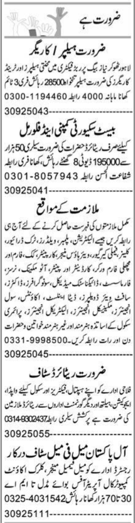 Private Company is looking for candidates for following posts as per job advertisement published in daily Express Newspaper of July 14, 2025 for location Lahore, lahore Punjab Pakistan: