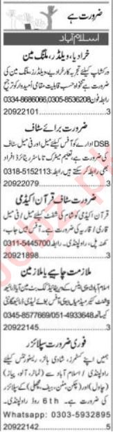 Private Company is looking for candidates for following posts as per job advertisement published in daily Express Newspaper of January 15, 2024 for location Islamabad, rawalpindi Islamabad Pakistan: