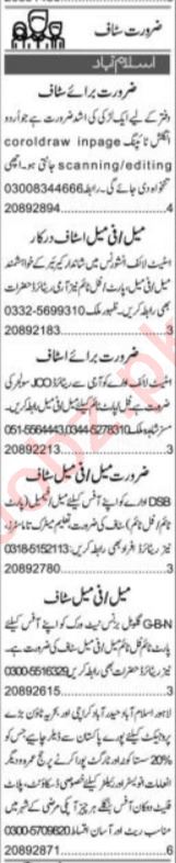 Private Company Islamabad, lahore, karachi and hyderabad Islamabad Pakistan invites applications from eligible candidates for the post of jco, typist, solider, insurance agent, dealer, composer and office staff as per advertisement of April 17, 2023 published in daily Express Newspaper. Preferred Education is Intermediate, Matric, Middle, Bachelor and BA etc.