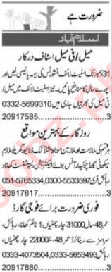 Private Company Islamabad, islamabad Islamabad Pakistan invites applications from eligible candidates for the post of cook, driver, chowkidar, office boy, office staff, house worker, insurance agent, security guard, receptionist, fauji guard and electrician as per advertisement of December 18, 2023 published in daily Express Newspaper. Candidates with BA, Intermediate, Middle, Matric and Bachelor etc. educational background will be preferred.