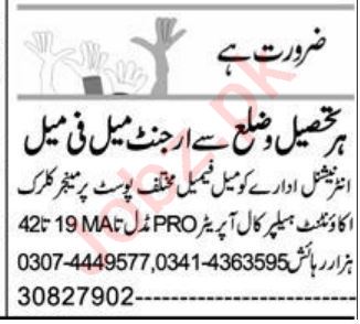 Educational qualifications required Bachelor, Matric, Middle and Intermediate etc.