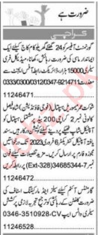 Vacant posts including aya, marketing staff, masi and sales staff are announced in Private Company Karachi, karachi Sindh Pakistan as per 23 January 2023 advertisement in daily Express Newspaper. Educational qualifications required Bachelor, Matric, Intermediate and Middle etc.