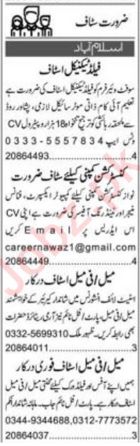 Private Company invites applications for job positions advertised in daily Express dated 25 July 2022 for following vacancies in Rawalpindi, islamabad Punjab Pakistan.