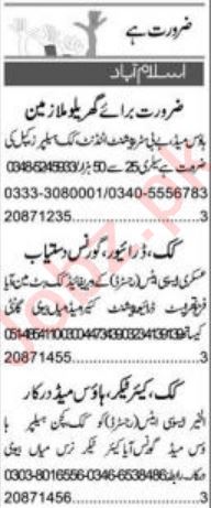House is looking for candidates for following posts as per job advertisement published in daily Express Newspaper of September 26, 2022 for location Islamabad, islamabad Islamabad Pakistan: