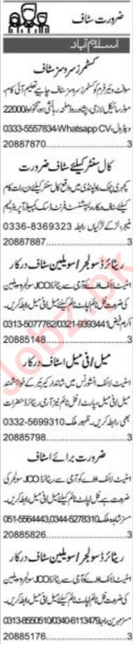 Todays New Jobs in Islamabad