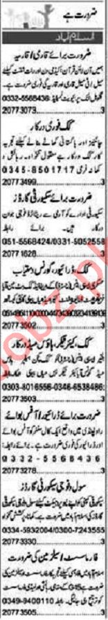 Insurance Agent, Sales Officer, Cook, Security Guard, Watchman, Driver, Kitchen Helper, Dish Washer, Loader, Waiter, Receptionist, Supervisor, Chef, Maid, Assistant Nurse, LHV, OT Technician, Public Dealing Expert, Office Assistant, Field Officer needs in well progressive companies.