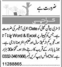 Latest Data Entry jobs and others Classifieds jobs in Private Company closing date is around May 14, 2024, see exact from ad. Read complete ad online to know how to apply on latest Private Company job opportunities. Some jobs in Private Company may require skills like Word, MS Office, Excel and Data Entry.