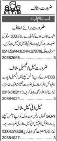 Private Company jobs advertisement dated about 30 January 2023 in daily Express Newspaper invites application for the vacant post of jco, office staff, solider and female office staff in Islamabad, rawalpindi Islamabad Pakistan. Candidates with Matric, Middle, Intermediate and Bachelor etc. educational background will be preferred.